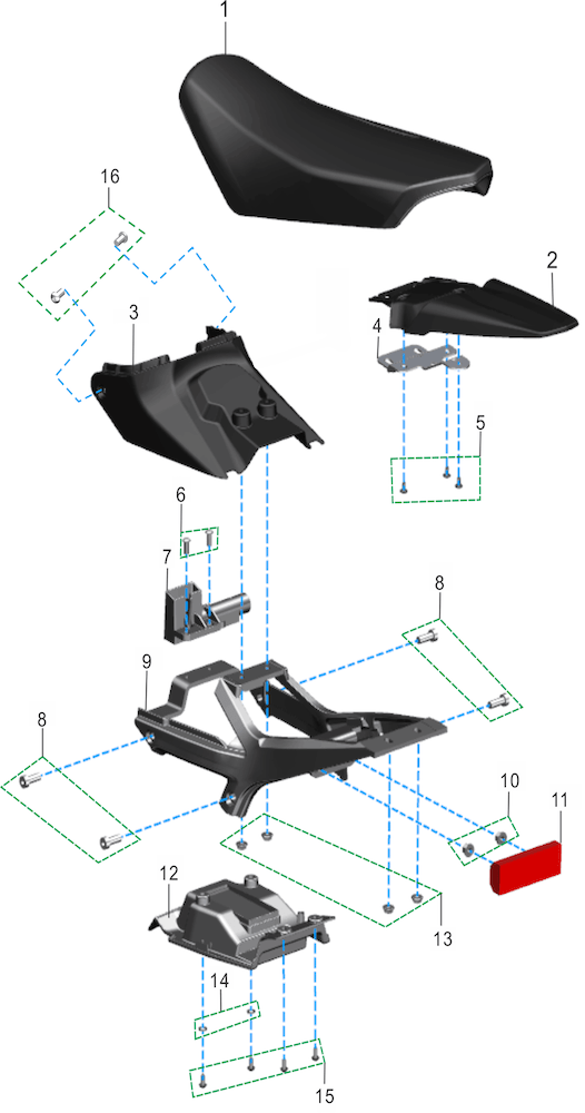 Battery Pack Rear Fender Holder, Bestil 4 for komplet s?t(T-43411-56000-000)